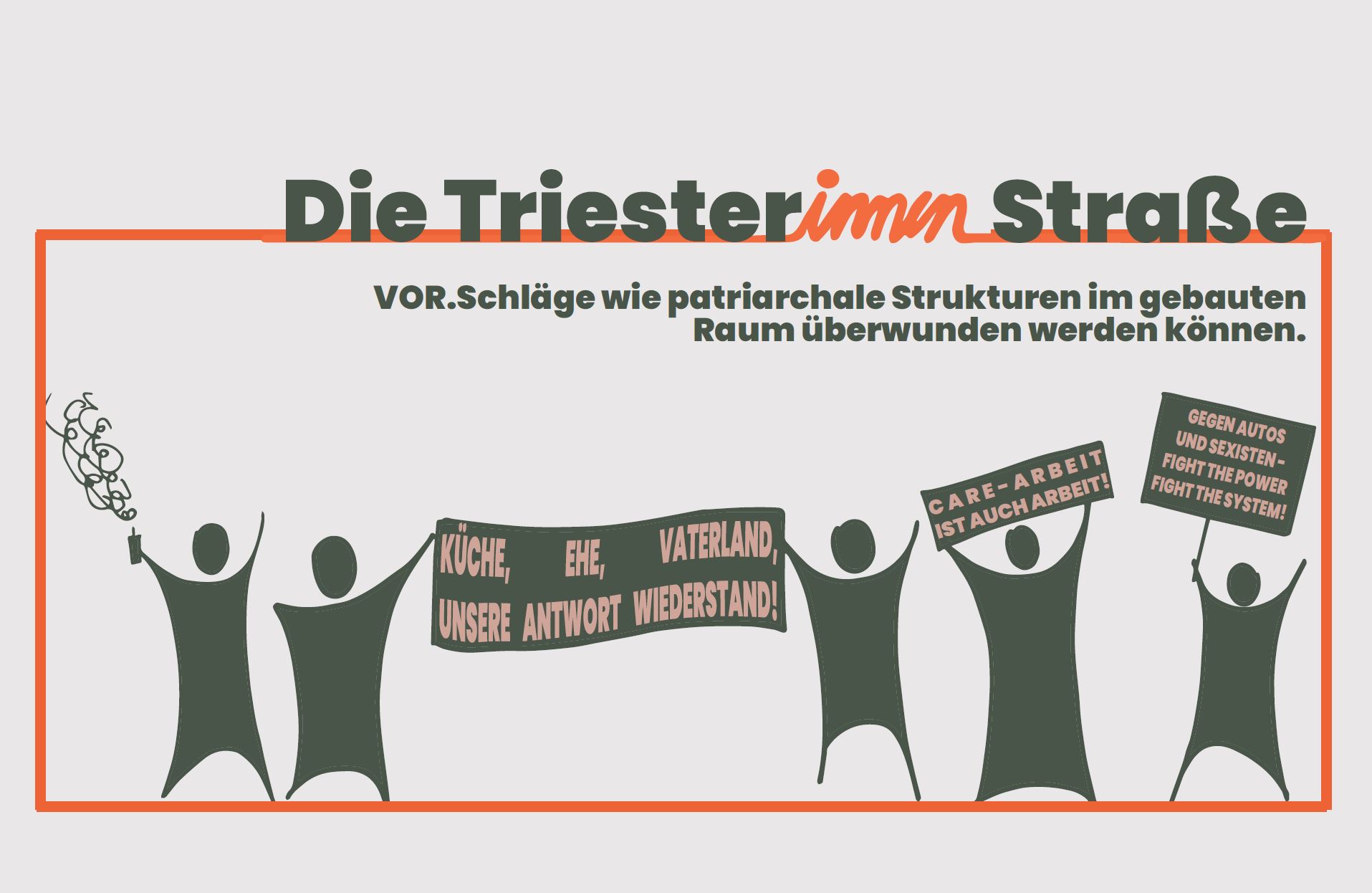 Ein räumliche Entwicklungskonzept mit einem gegenderten Straßen Namen als Titel? Ist das Provokation? Neckerei?Humor? Die Triester:innen Straße ist all das und viel mehr. Sie zeigt mit dem Finger auf die vielen Autos die auf ihr