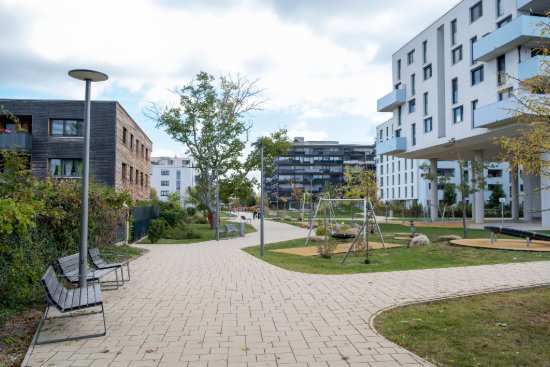 geprägten Wohnstrukturen bis hin zu neu entstandene städtische Wohnformen und einer hohe Anzahl an Einfamilienhäusern sind im Umfeld der Triester Straße vorzufinde. Zusätzlich prägen Erholungsgebiete und Gewerbe-
